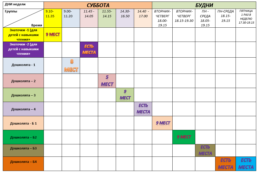 Количество мест актуально и постоянно обновляется.