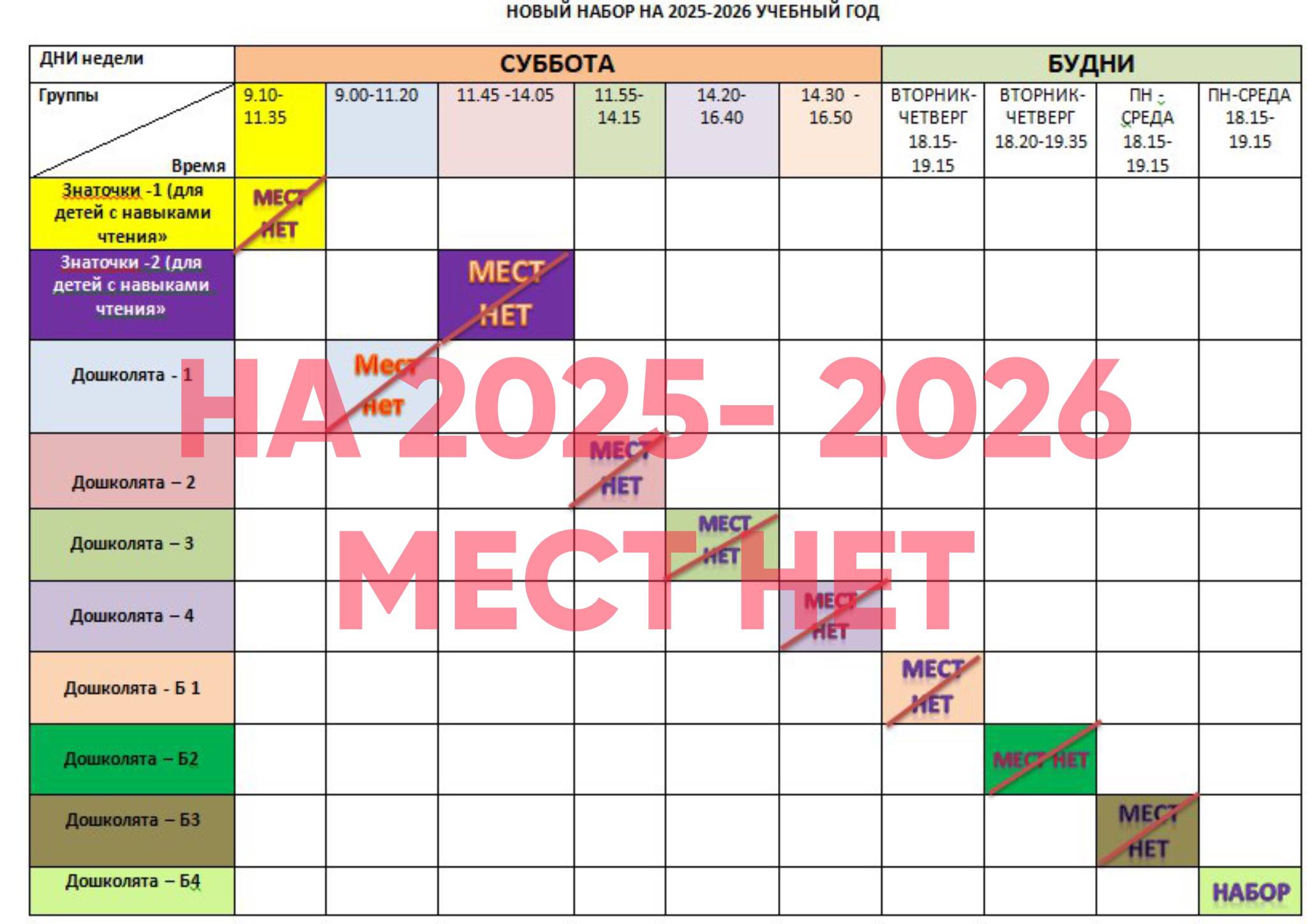 Группы "ДОШКОЛЯТА" на 9.00 и 11.50 НАБРАНЫ!!!