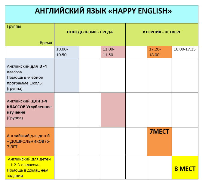 Время работы групп :