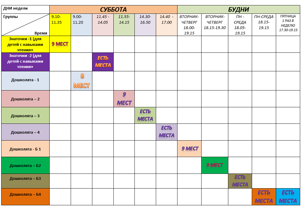 Количество мест актуально и постоянно обновляется.